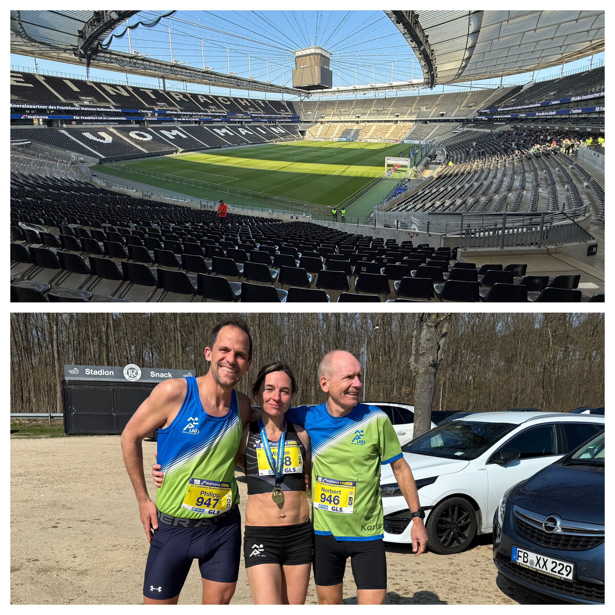 Am Sonntag (22.3.) fand der Frankfurter Halbmarathon statt, in dessen Rahmen auch die Deutschen Meisterschaften über dieselbe Distanz ausgetragen wurden. Mit dabei waren auch drei Vertreter*innen der LSG. Der Wettergott meinte es mit den über 12000 gemeldeten Läufer*innen gut: kühle Temperaturen, trocken und sonnig, dabei kaum Wind. Die Anreise mit dem Auto verlief für uns Durlacher ohne Komplikationen und auch die zunächst als schwierig vermutete Parkplatzsuche erwies sich als gänzlich unproblematisch. Gegen 8:40 waren wir vor Ort, der Weg zum Start war kurz und so hatten wir alle notwendige Zeit, um uns auf das Event einzulassen, Atmosphäre aufzusaugen und die üblichen pre-race Rituale durchzuführen.